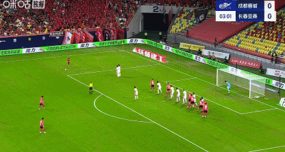 第33分钟,成都战术角球配合,严鼎皓迎球打门踢飞